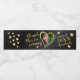 Create unique black and faux gold Thank You water bottle labels for the 2025 graduation party with an elegant design that features a heart-shaped photo, the graduate's name and surname, and year. Use the template to type the Grad's name and year and upload a picture. Black background imitates metallic surface.