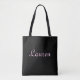 This tote bag, with it's sophisticated lettering, will add a bit of specialness when you run your errands for the day. Customizable. By Sharon Lee Hudson.
