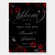 Make a bold and sophisticated first impression with this Elegant Black and Red Floral Wedding Welcome Sign. Designed to set the tone for a stylish and romantic celebration, this stunning sign features a dramatic black background adorned with deep red roses and delicate floral accents—perfect for couples who love timeless elegance with a passionate twist. Ideal for fall weddings, winter ceremonies, or any luxurious wedding theme, this welcome sign is a beautiful way to greet your guests as they arrive. The vibrant floral design adds warmth and romance, while the sleek black backdrop enhances the modern elegance of your special day. Fully customizable and personalizable, this sign allows you to easily edit your names, wedding date, and a heartfelt welcome message to make it truly yours. Whether placed at the ceremony entrance, reception hall, or near the guestbook, it becomes a memorable detail and a keepsake from your wedding day. Available in multiple sizes and easy to print or frame, this sign complements a variety of wedding styles—from romantic gothic and vintage glam to classic formal events. Key Features: Elegant red floral design on black background, Perfect for fall, winter, or formal weddings, Fully customizable and personalizable text, Great for ceremony or reception entrances, Available in multiple sizes and formats, A beautiful decorative keepsake. Create a welcoming atmosphere full of style, love, and beauty with this Elegant Black and Red Floral Wedding Welcome Sign—a timeless statement for your unforgettable day.