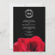 Elegant Black and Red Rose Silver Laurel Initials Invitation