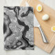 Elegant Black and Silver Glitter Agate Pattern Kitchen Towel