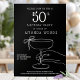 Stylish black background with minimalist line art champagne glass design. Perfect for celebrating a milestone birthday in a classy and modern way.