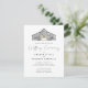 A unique minimalist design featuring a one of a kind rustic barn illustration with yellow string lights, modern calligraphy and fonts. This elegant barn private wedding ceremony card is perfect for a cozy intimate gathering. The backside has the couple's names and website address for additional details.
