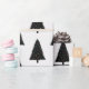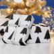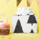 Elegant and modern black and white Christmas gift wrap featuring a stylish Christmas tree pattern.