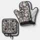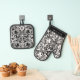 Elegant Black and White Floral Damask Pattern Oven Mitt & Pot Holder Set