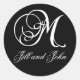 Elegant Black and White Monogram M Names Stickers. Customize with your names and background colour