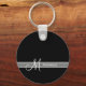 A trendy designer keychain with a sleek black background and modern frosted white stripe. Personalize this elegant monogrammed keyring by adding your name and initials.