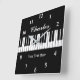 Elegant black and white grand piano key custom Square Wall Clock. Personalize with name, monogram, funny quote or slogan. Classy design for the kid's room, waiting room, music lessons school, hall way, shop, store, business center, company entrance, kitchen, study, office, clinic, salon, practice. Custom background color. Unique Birthday gift ideas for piano player, pianist, classical music teacher, musician, instructor, producer, artist, husband, wife, dad, mom, children etc. Trendy home decor accessories.