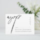 Elegant Black and White Script Typography Wedding RSVP Cards - Classic Elegance in a White Aesthetic. Elevate your wedding announcement with our modern black-and-white script typography RSVP cards, a timeless choice for your special day. These RSVP cards seamlessly combine classic and elegant design elements with a clean aesthetic, creating a striking contrast that sets a formal and sophisticated tone. The simplicity of the black-and-white color scheme and the elegance of the black typography make these RSVP cards a perfect choice for couples seeking a simple yet impactful statement. Choose these RSVP cards to let your love shine in a classic and modern fusion