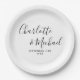 Elegant signature black and white wedding paper plates personalized with signature style names and your special wedding date. Designed by Thisisnotme©