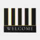 Add and elegant touch to your front door with this stylish doormat. A stylish design features vertical black and white stripe pattern with gold accents and WELCOME in a simple white typography.