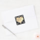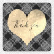 Elegant black and white striped thank you square sticker with a golden beige heart for a classy birthday party, for chic celebrations, and for elegant letters.