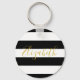 Faux (not foil) gold display text appears on a black and white striped wallet. You can edit this elegant script to show the desired name or message.