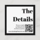 This wedding enclosure card has black text you can edit to show a custom message and your website URL. The text appears on a white background surrounded by a dramatic black border. Also, please remember to enter your wedding website URL for the QR code to work correctly.