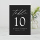 Trendy, minimalist wedding table number cards featuring white modern lettering with "Table" in modern calligraphy script. The design features a black background or a color of your choice. The design repeats on the back. To order the black and white table cards: add your name, wedding date, and table number. Add each number to your cart individually and check out when you're finished.