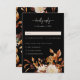 Elevate your wedding stationery with the Elegant Black Autumn RSVP Card featuring an elegant script from the "Fall Black Terracotta Floral and Leaves Wedding Invitation Collection." Immerse your guests in the stunning elegance of hand-painted watercolor burnt orange and terracotta leaves, cream and beige dahlias, and stunning copper and rust-colored roses on a black background. This RSVP card captures the essence of an autumn wedding, ensuring a cohesive and unforgettable experience. Thoughtfully designed to complement coordinating invitations, enclosure cards, and welcome signs, this RSVP card adds a touch of sophistication to your wedding. Order now to ensure every detail of your celebration aligns seamlessly with your theme and create memories that will be cherished forever!