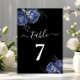 Elegant Black Blue Floral Table Number