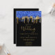 Elegant Black Blue Gold Glitter Drips Wedding Invitation