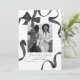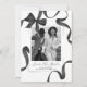 These wedding save the date cards feature a simple white background, with a photo centrepiece adorned by a beautiful black watercolor ribbon and bow. On the back is another photo and further details about your future wedding.