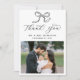 Share your gratitude with this elegant photo wedding thank you card featuring a hand-drawn black bow and “Thank You” in graceful black calligraphy on a white background. Personalize the design with your names and wedding date above your favorite horizontal wedding photo for a meaningful keepsake that captures your special day. The back of the card offers space for your personal thank you message, making it easy to express heartfelt appreciation to family and friends for their love, support, and thoughtful gifts. A timeless black and white design, it’s the perfect blend of modern simplicity and classic wedding style.
