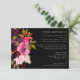 Elements: Vibrant floral arrangements surrounding a black frame. Elegant serif fonts with flourishes of script. Colors: black, burgundy, blush, pink, plum, cranberry, green, orange. Themes: elegant, boho, bothanical, bohemian, romantic, dark, moody, lush, garden, winter, fall, romantic. Collection: Elegant Black Burgundy Pink Floral Frame Wedding Collection. Product Type: Enclosure Card