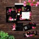Elements: Vibrant floral arrangements surrounding a black frame. Elegant serif fonts with flourishes of script. Colors: black, burgundy, blush, pink, plum, cranberry, green, orange. Themes: elegant, boho, bothanical, bohemian, romantic, dark, moody, lush, garden, winter, fall, romantic. Collection: Elegant Black Burgundy Pink Floral Frame Wedding Collection. Product Type: Envelope