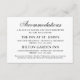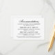 A sophisticated accommodations card featuring flowing calligraphy script and clean serif details in a timeless black-and-white design. Perfectly coordinates with a classic wedding suite to guide guests to nearby lodging. Customize hotel names, addresses, phone numbers, and booking instructions with ease.
