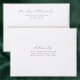 These wedding envelopes feature a clean, minimalistic design with ample white space for an elegant look. The typography is sophisticated, using delicate script and serif fonts to convey formality and refinement. Customizable placeholder text allows personalization for names and addresses, making them perfect for weddings or formal events. The monochromatic color palette enhances clarity and simplicity, ensuring the focus remains on the refined typographic elements. Ideal for couples seeking understated yet stylish stationery.
