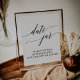 This elegant black calligraphy date jar sign is perfect for a simple wedding. The neutral design features a minimalist poster decorated with romantic and whimsical typography.