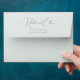 This wedding envelope features a minimalist and elegant design with a focus on typography. The names are displayed in an elaborate cursive script, while the address is presented in a simple serif font, creating a balance between sophistication and clarity. The monochromatic color palette enhances its formal and refined aesthetic, making it perfect for weddings or significant announcements. Its clean layout and absence of decorative elements emphasize simplicity and timelessness, ideal for those who appreciate understated elegance.