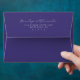 This elegant wedding envelope features a minimalist design with a rich, deep purple background. The layout is vertically oriented, showcasing the names in an ornate script font and the address details in a clean serif typeface, both in contrasting white for readability. The overall style exudes sophistication and formality, making it perfect for a classic and timeless wedding theme. With ample negative space, the design emphasizes clarity and focus, ideal for those seeking understated elegance.