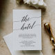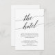 This elegant black calligraphy hotel enclosure card is perfect for a simple wedding. The neutral design features a minimalist card decorated with romantic and whimsical typography.