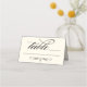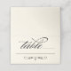 A classic wedding escort card featuring the word "table" in flowing black calligraphy script with a decorative scroll flourish on a warm ivory background. The bold black ink and graceful penmanship create a timeless, sophisticated look for your reception seating. Each tent-fold card arrives pre-scored, and guest names and table assignments are filled in by hand.