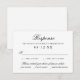 A polished response card with meal selection, combining flowing calligraphy script with clean serif typography. The refined black-and-white design coordinates seamlessly with a classic wedding suite. Customize the entree options, reply-by date, and guest details to suit your reception menu.