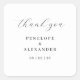This wedding sticker features a minimalist design with a clean, elegant layout. The phrase "thank you" is written in flowing cursive script at the top, while the names and date are presented in uppercase serif and sans-serif fonts below, offering a sophisticated look. The black text on a white background emphasizes clarity and timelessness, making it perfect for expressing gratitude at weddings or other formal events. Its modern yet classic style ensures it complements any celebration decor effortlessly.