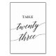 This elegant black calligraphy table twenty three table number is perfect for a simple wedding. The neutral design features a minimalist card decorated with romantic and whimsical typography. The card prints on the front and back (double-sided). Other table numbers in the collection are sold separately.