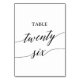 This elegant black calligraphy table twenty six table number is perfect for a simple wedding. The neutral design features a minimalist card decorated with romantic and whimsical typography. The card prints on the front and back (double-sided). Other table numbers in the collection are sold separately.