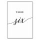 This elegant black calligraphy table six table number is perfect for a simple wedding. The neutral design features a minimalist card decorated with romantic and whimsical typography. The card prints on the front and back (double-sided). Other table numbers in the collection are sold separately.