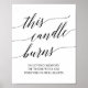 This elegant black calligraphy "this candle burns" sign is perfect for a simple wedding. The neutral design features a minimalist poster decorated with romantic and whimsical typography.