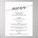 This simple black calligraphy wedding menu sign is perfect for a simple wedding. The neutral design features a minimalist poster decorated with romantic and whimsical typography. Personalize the sign with your menu options, names, wedding date and location.