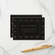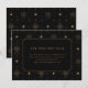 This elegant wedding enclosure card features a sophisticated black background adorned with gold celestial motifs, including stylized suns and stars arranged in a symmetrical grid pattern. The central panel showcases clean serif typography in a matching gold hue, highlighting the heading "ALL THE DETAILS" followed by customizable text directing guests to a wedding website for more information. The design exudes a vintage charm with its cosmic theme, creating an atmosphere of formality and anticipation perfect for special occasions like weddings.