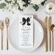 Bring timeless charm to your celebration with this Elegant Black Bow Menu Card featuring delicate wildflowers and graceful butterflies. Accented with a chic black bow, this versatile design is perfect for birthday dinners, brunches, bridal showers, weddings, graduations, and more. A beautiful way to highlight your event menu, this customizable card adds a sophisticated touch to any table setting while creating a memorable detail your guests will love.