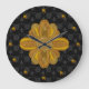 Chic wall clock done in a black on black floral damask pattern. Elegant graphics of gold studs represent the numbers, around the edge, and a lovely gold tone Art Deco style decoration in the middle of the clock. Customize to add text. Lovely clock for any room of the house or office.