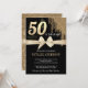 Elegant Black Dripss Gold Glitter 50th Invitation