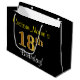This simple, elegant birthday gift bag design features a personalized message like "CustomName’s 18th Birthday!" (with the "18th" having a faux/imitation gold-like coloring look) on a black colored background. The name is in script-like, yellow-colored text, and can be customized. A personalised birthday gift bag like this could perhaps be used when giving a present or gift to somebody who is celebrating their eighteenth birthday. [~Z0000258]