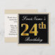 Elegant, Black, Faux Gold 24th Birthday + Name Invitation