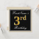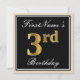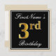 Elegant, Black, Faux Gold 3rd Birthday + Name Invitation