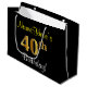 This simple, elegant birthday gift bag design features a personalized message like "NameHere’s 40th Birthday!" (with the "40th" having a faux/imitation gold-like coloring look) on a black colored background. The name is in script-like, yellow-colored text, and can be personalized. A personalised birthday gift bag like this could perhaps be used when giving a present or gift to somebody who is celebrating their fortieth birthday. [~Z0000258]
