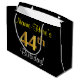 Elegant, Black, Faux Gold 44th Birthday + Name Large Gift Bag