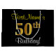 Elegant, Black, Faux Gold 50th Birthday + Name Large Gift Bag